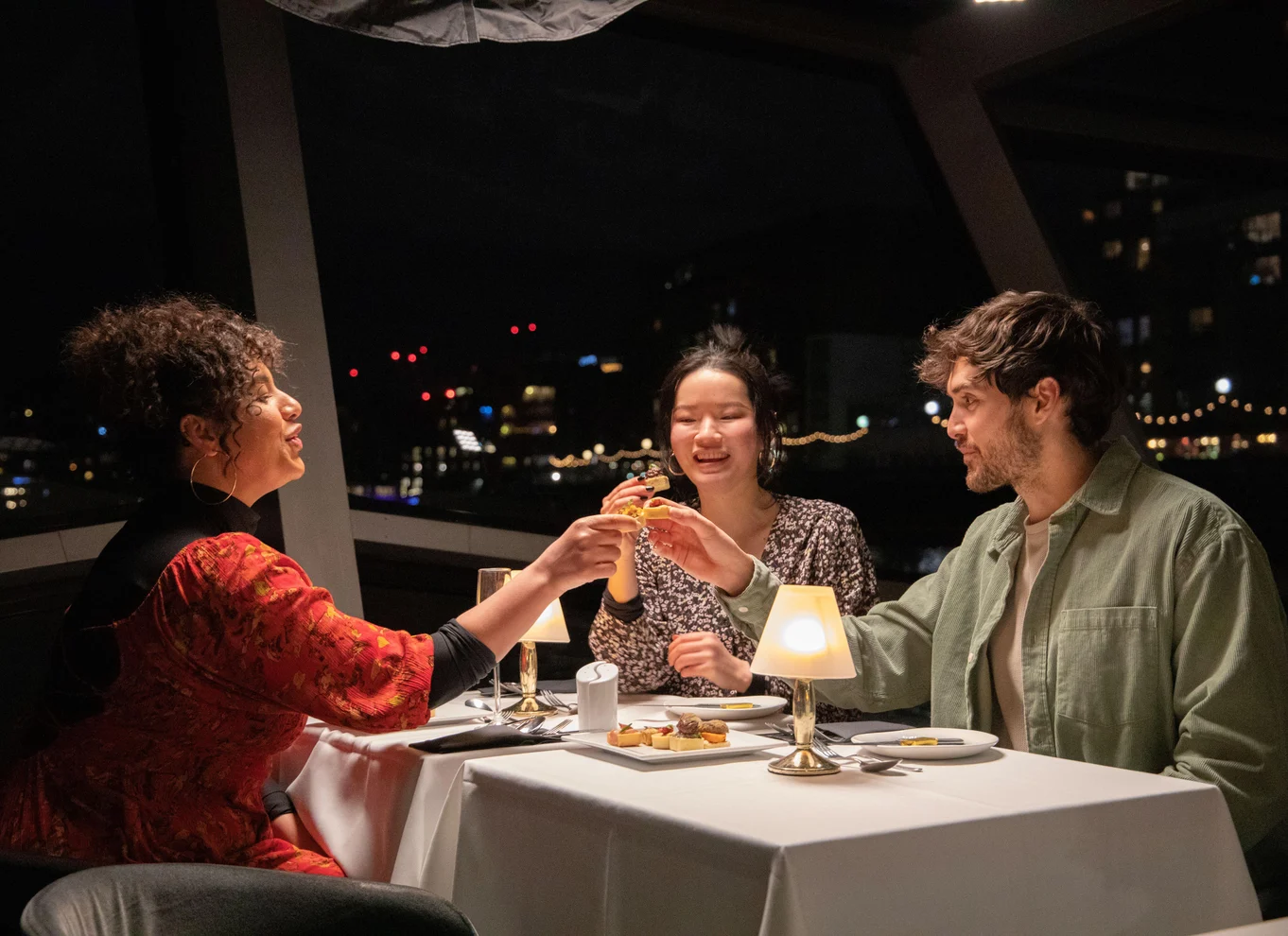 Wenn die Dunkelheit hereinbricht, folgt auf das Abendessen ein Live-Sänger, der Stücke aus der Vergangenheit und Gegenwart sowie andere populäre Musik für dich singt. Obwohl Tanzen während und nach der Vorstellung gerne gesehen wird, kannst du dich auch zurücklehnen und einfach die Musik und Sehenswürdigkeiten genießen. Die Fahrt endet am ursprünglichen Ausgangspunkt.
