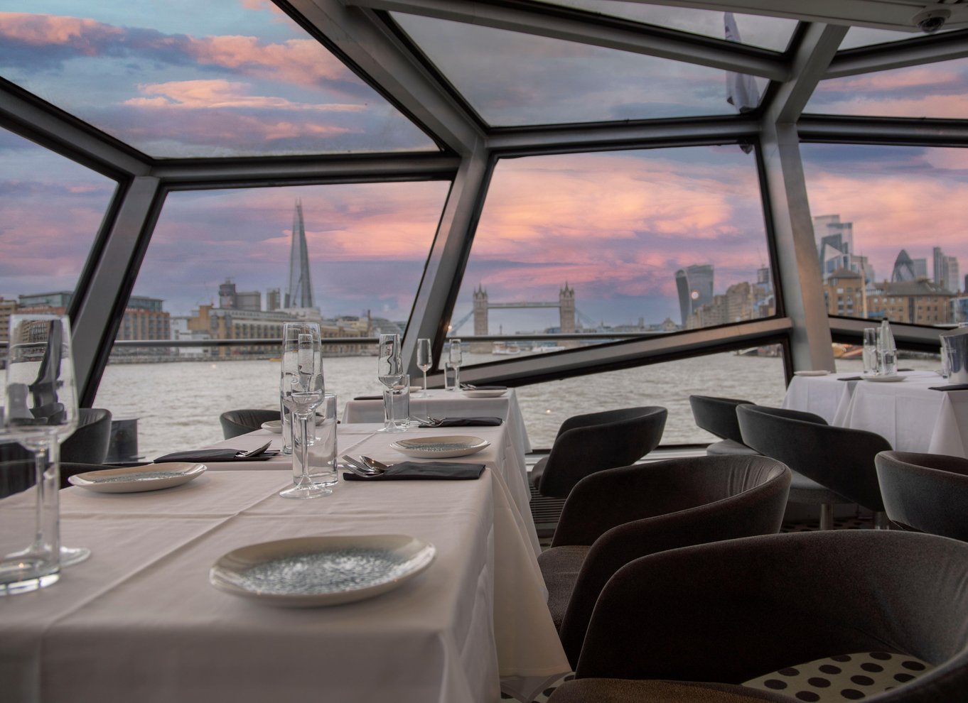 Begib dich auf eine wunderbare Dinner-Bootsfahrt auf der Themse. Genieße eine Live-Performance und tanze bis in die Nacht, während du an Londons beleuchteten Denkmälern vorbeifährst.